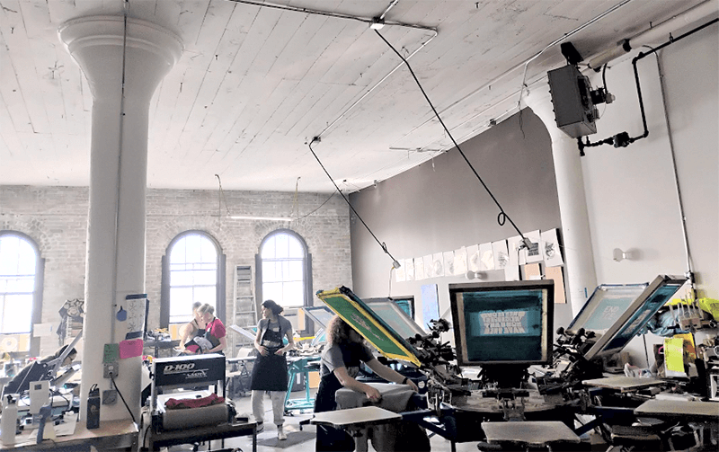 But a life transition came along. Price left a former company and moved screen printing machinery to the Grain Belt Warehouse building. His amount of machinery increased over time. Since then, other things have expanded as well, including the number of volunteers.
