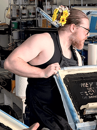 Operations has grown exponentially from there. The Art Price Studio, with its six presses, is open every weekend, Friday through Sunday, for people to come in, garments in hand, and have one of their templates applied.