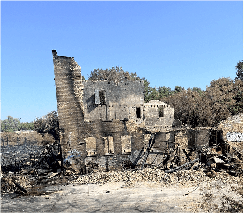 Ultimately, the development was delayed. Post-pandemic, as the building sat vacant for the most part, graffiti proliferated and unauthorized visitors found their way into the building. A fire on September 7 destroyed two-thirds of the building. Over a week later, the rubble was still smoking.