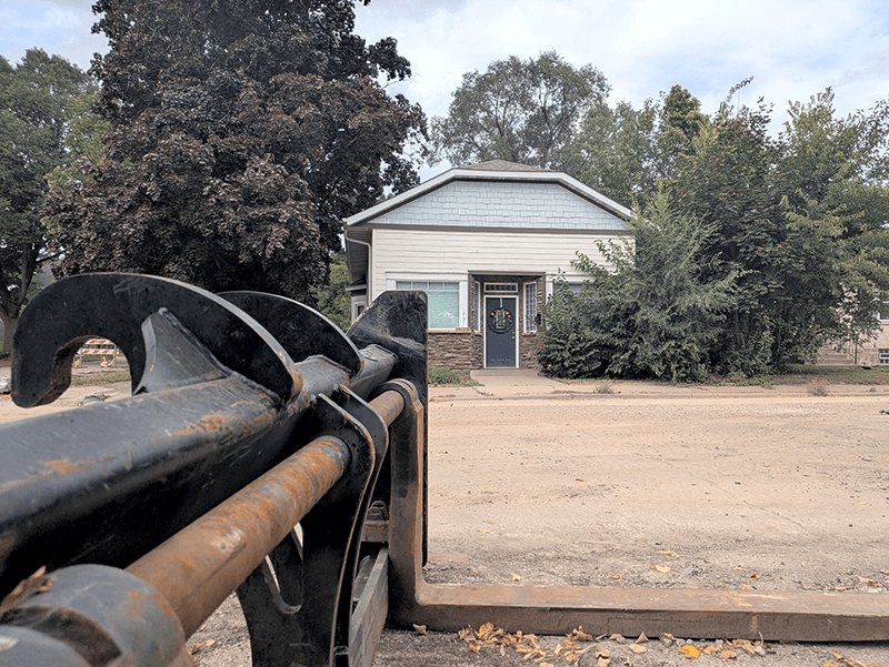 Viewed from road construction equipment working on this section of Lowry Avenue, the former store at 1701 Lowry Ave. NE is a single-famliy house. (Michael McKinney)