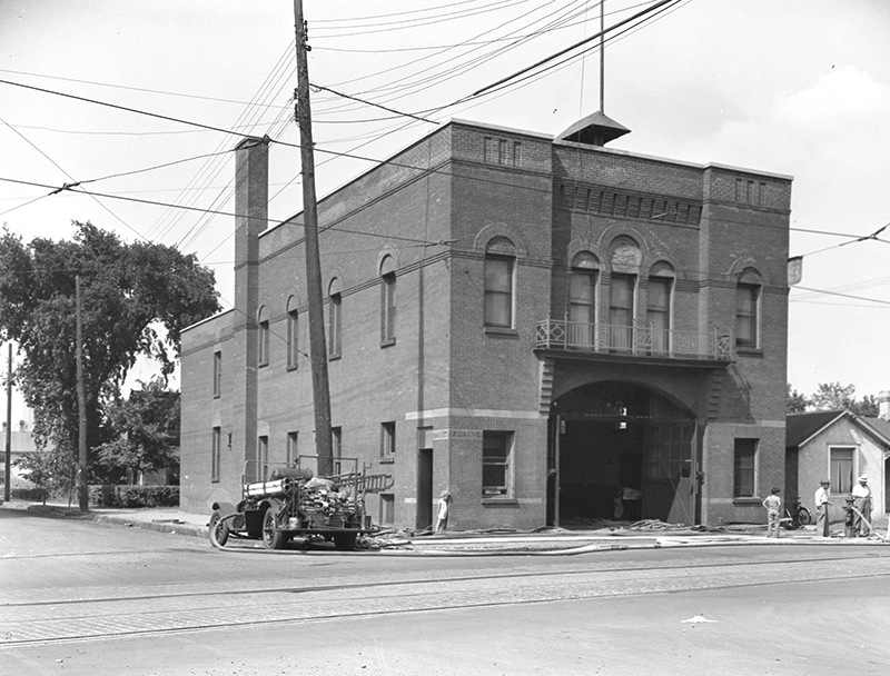 By 1900, there were a dozen operating fire stations in the city, three of them in Northeast: Station 2, at 13th Avenue NE; Station 11, at 2nd Street NE; and Station 15, at 2500 Central Avenue NE. With the increased complexity of equipment and operations, a Fire Department repair shop located downtown was deemed inadequate for the department’s needs, and a new building was constructed at University and First Avenue NE in 1909.