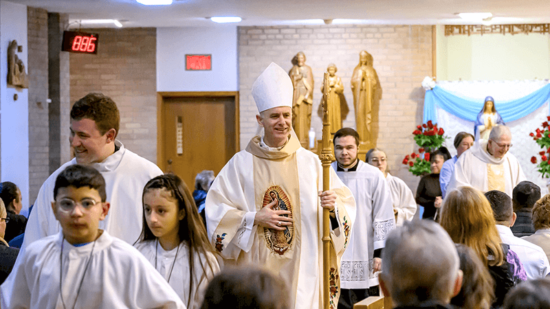 Bishop Joseph Williams, auxiliary bishop of the Archdiocese of St. Paul and Minneapolis, with Alexander Marquette, Seminarian behind.
