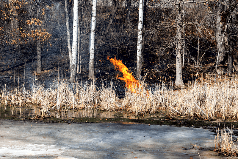 A grass fire was reported around 2:30 p.m. March 21 near the entrance to Silverwood Park. Heidi Sawyer, who was visiting the park, took photos of the scene. “I’m pretty sure it wasn’t a prescribed burn, since no one was monitoring it when I first noticed it,” Sawyer told the Northeaster. The St. Anthony Village Fire Department responded around 3:30 p.m., along with the St. Anthony Police Department and New Brighton Department of Public Safety. Crews contained the fire and prevented it from spreading into the surrounding area. County Road E, which runs along the northern edge of the park, was temporarily closed to allow crews to work and reopened after the fire was extinguished. The cause of the fire remains under investigation. (Heidi Sawyer)
